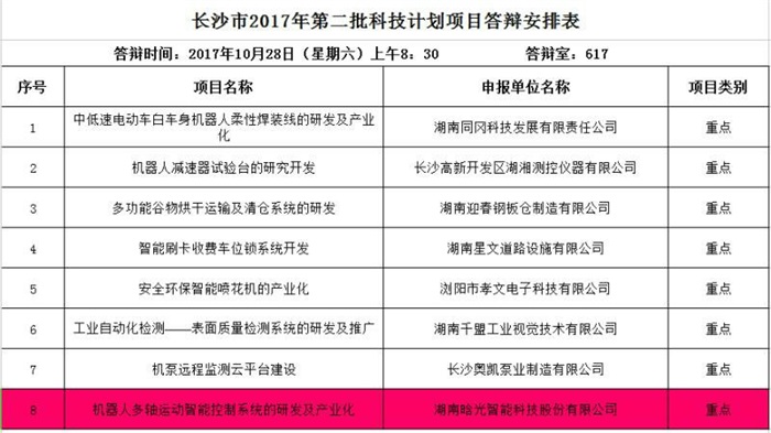 2017年10月28日,晗光智能組團參加了長沙市2017年第二批科技計劃項目答辯。項目的技術(shù)創(chuàng)新性和產(chǎn)品的高性價比受到了評委專家們的一致好評。